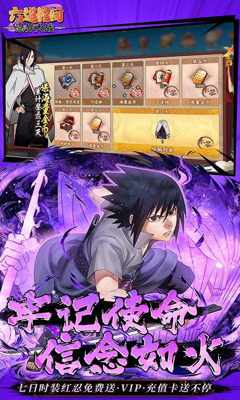 进服福利:1、开局无限红包:海量金币/成套装备/木叶三忍