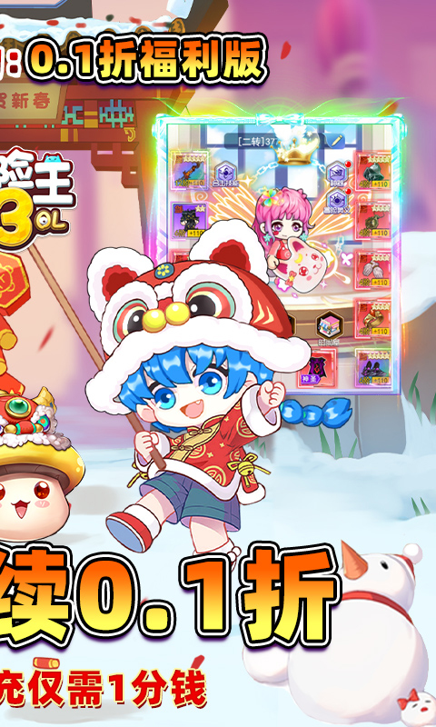 游戏介绍:《冒险王3OL(0.1折怀旧服)》是冒险王手游系列的又一新品,传承了冒险王系列手游的经典玩法和美术风格。上线就送免费充值工具,直接免费激活首充,还能激活所有福利卡拿海量资源,每日累充,充全部激活,全场0.1折购买,拿海量金币且激活游戏内大量累充活动,拿极品奖励!每天登录活跃就可领取海量充值卡!百万充值卡上亿彩钻等你来拿!充值卡直接激活贵族VIP!神级还原了吸怪的经典玩法,Q萌Boss满身神装等你爆,还有数千种时尚搭配。神秘的未知大陆,Q萌的冒险世界,快来和小伙伴们一起找回最初的快乐吧!