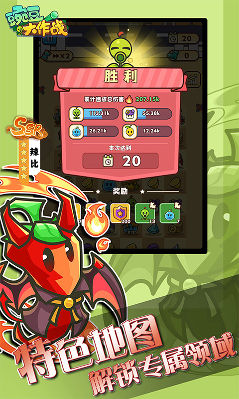 游戏介绍:《豌豆大作战》是一款带有植物元素的冒险即时战斗游戏,通过合成植物来获得强大的实力,放置上阵喜欢的阵容来抵御入侵者攻击,选择您的策略让战斗变得更加的轻松容易,各种技能随机搭配,玩起来非常的爽快轻松,无限升级让阵容会越来越强。