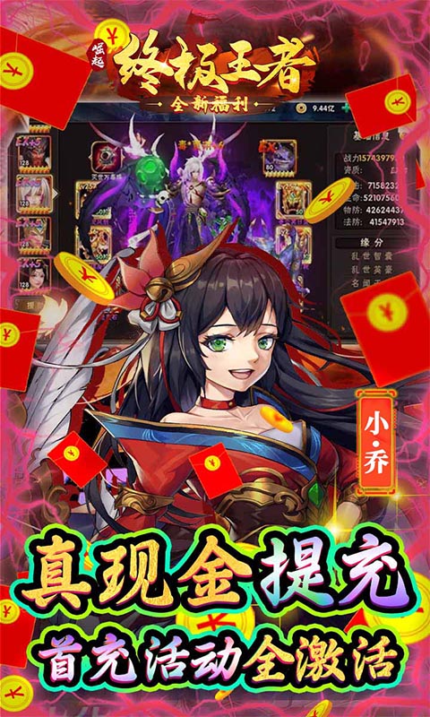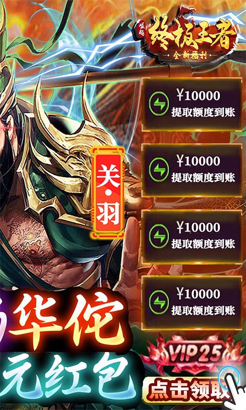 游戏介绍:这款三国卡牌手游上线领满V、送万元返利券!任务赞助每天领300元现金点(可代替元宝充值,激活游戏内运营活动)。各种返利领不停,战力阵容直接飞速成长,精美丝滑的战斗画面、极高的抽卡率都成为了它独特的亮点,多维度玩法,全方位养成,更融合了多种PVE玩法,是一款三国题材3D即时动作卡牌手游大作,让玩家通过自己的谋略解锁更多意想不到的三国阵容,游戏内置一键闯关玩法,轻松喝茶刷副本 和好友一起征战天下!