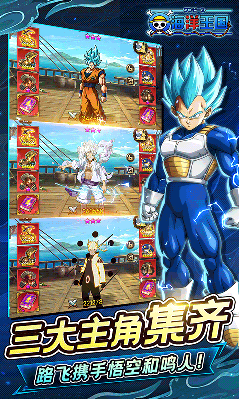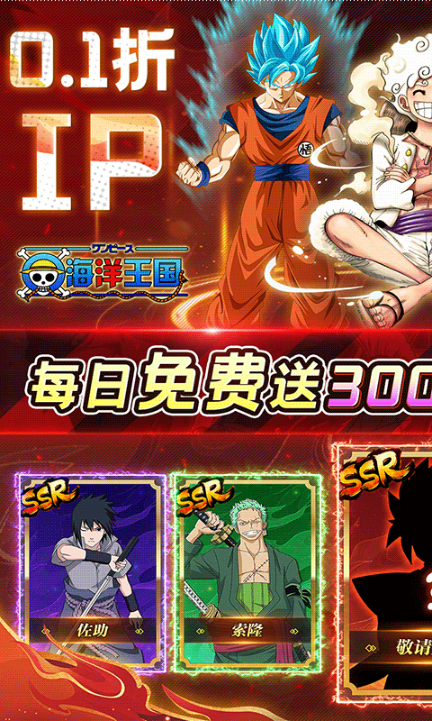 游戏介绍:《海洋王国》0.1折IP联动免费版,每天送3000元平台代金券!梦幻联动经典突破!民工漫IP大集结,海贼与龙珠火影联动,更有充值永久0.1折!路飞携手悟空和鸣人,一起寻找伙伴共闯新世界。好激动哦,下个联动人物是谁呢?