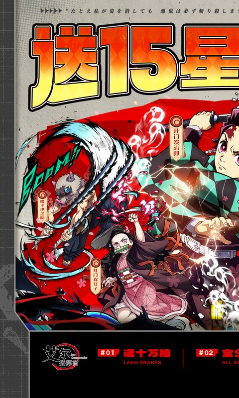 3、【七日签到】次日直升12星炭治郎[炎阳],4日送千年血气,5日直升15星炭治郎[炎阳],七日更有SSR专武-焰轮斩火!