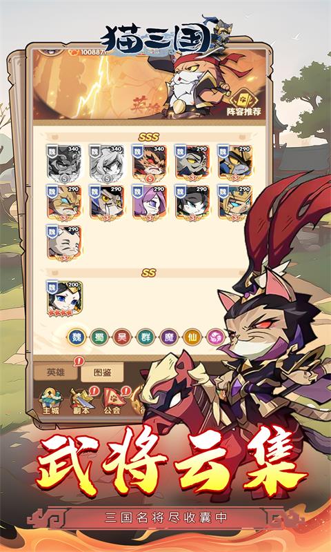 游戏介绍:《猫三国》是一款融合战斗、培养、萌宠、挂机等元素的卡牌游戏,帅气可爱的猫猫造型,精心雕琢的战斗场景,会让你爱不释手。游戏讲究布阵和策略技巧,以休闲的剧情和挂机推图玩法为核心体验,随玩随停又轻松解压。在这里,每一次出手、每一个决策都充满意义;在这里,你将探索无尽的冒险之旅;在这里,你将与传说中的英雄们并肩作战,共同书写不朽的三国史诗!