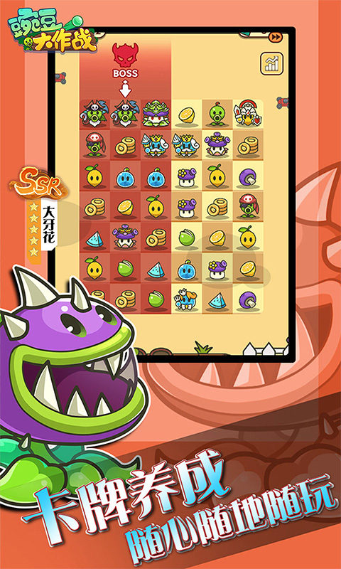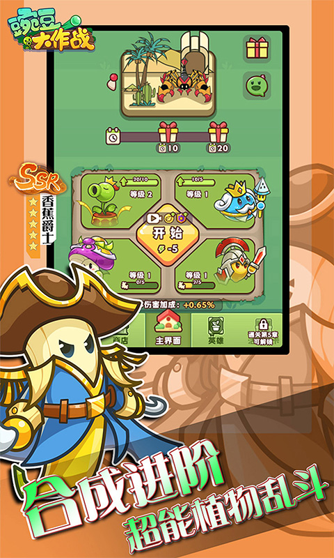 游戏介绍:《豌豆大作战》是一款带有植物元素的冒险即时战斗游戏,通过合成植物来获得强大的实力,放置上阵喜欢的阵容来抵御入侵者攻击,选择您的策略让战斗变得更加的轻松容易,各种技能随机搭配,玩起来非常的爽快轻松,无限升级让阵容会越来越强。